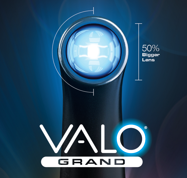 そして新たに「VALO GRANDコードレス」が今年登場いたします。従来の「VALOキュアリングライト」、「VALOコードレス」よりも約50%面積が大きくなったレンズは、大臼歯も1度の照射で光重合が可能となりました。
